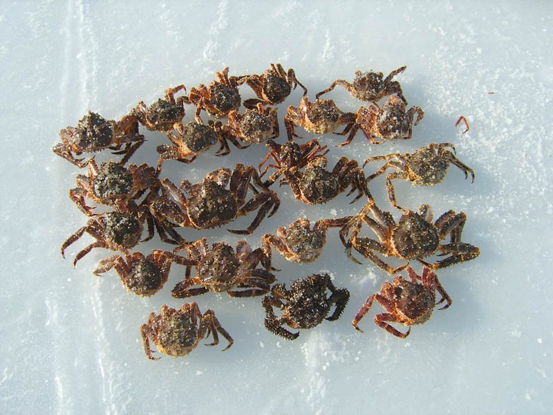Март 2010 г. Исследования по прибрежным видам крабов в весенний период в бухте Весёлая (Тауйская губа, Охотское море)